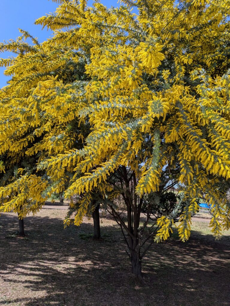 わんこ入れない場所だけど、園内のミモザは家族に見て貰ってます