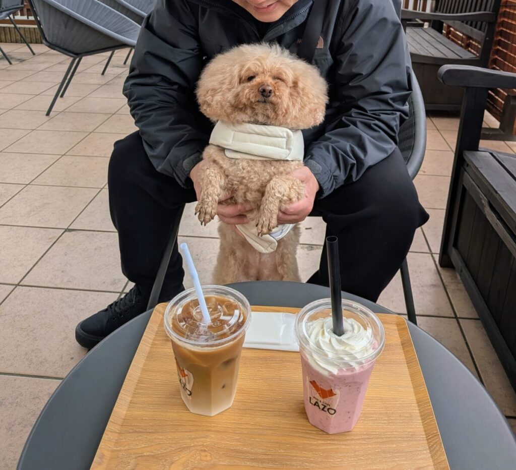 わさびは「飼い主から離れない派」なので(笑)、結局カフェ店内で一緒にまったり休憩しました